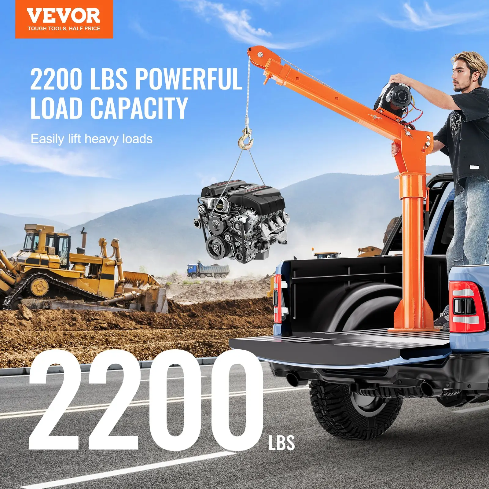 VEVOR Electric Pickup Truck Crane, 2200 lbs, Folding Truck-Mounted Bed Crane with Electric Winch 6000 lbs, Steel Pickup Truck Jib Crane Hoist 360 Swivel for Lifting Goods in Construction, Factory