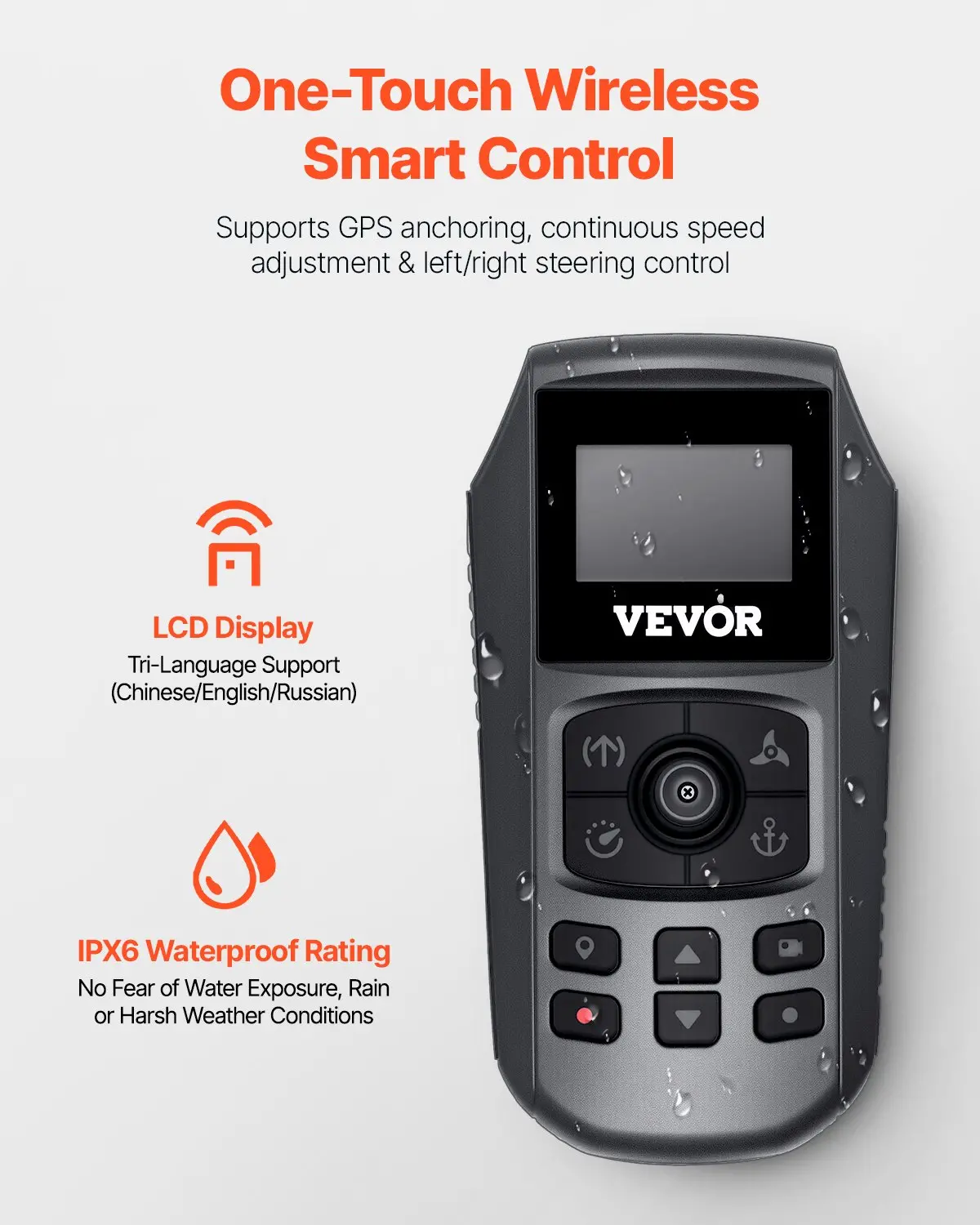 VEVOR Electric Trolling Motor, 55lbs Thrust with GPS, 10-Speed Bow Mounted Saltwater Outboard Boat Motor with Remote Control & LCD Battery Indicator, for Kayaks, Fishing Boats, 36-Inch Shaft