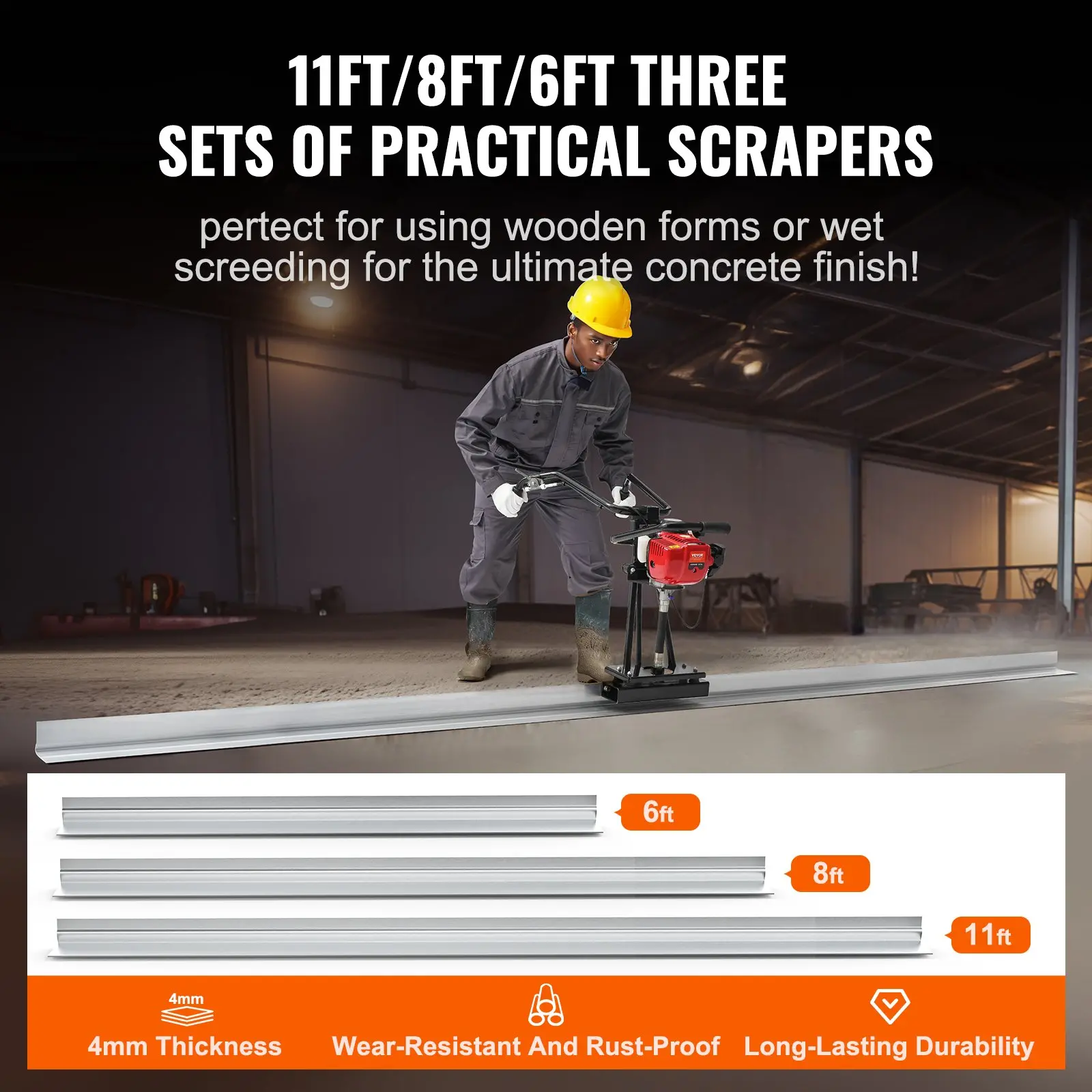 VEVOR Gas Concrete Power Screed, 6ft/8ft/11ft Aluminum Board Straight Edge Bar Set, 4 Stroke Cement Finishing Vibrating Motor w/ Height Adjustable Handles, High Efficient Concrete Tool 6500RPM