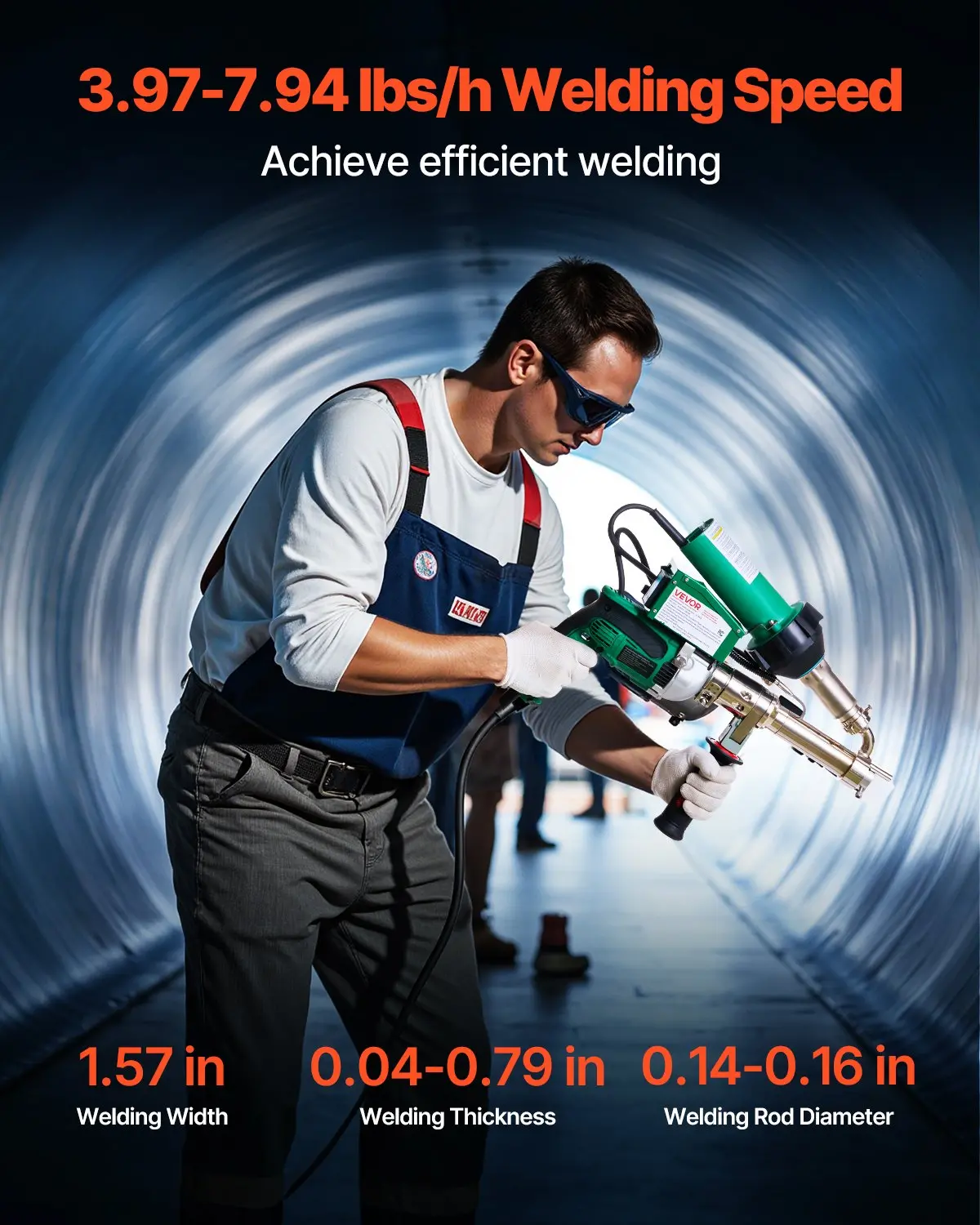 VEVOR Handheld Plastic Welding Extruder, 800W Hitachi Motor Extrusion Welding Gun – 0.79 in Weld Width & 360 Nozzle, Dual Heating System PP PE PVC HDPE Extrusion Welder for Membrane Pipe Plate
