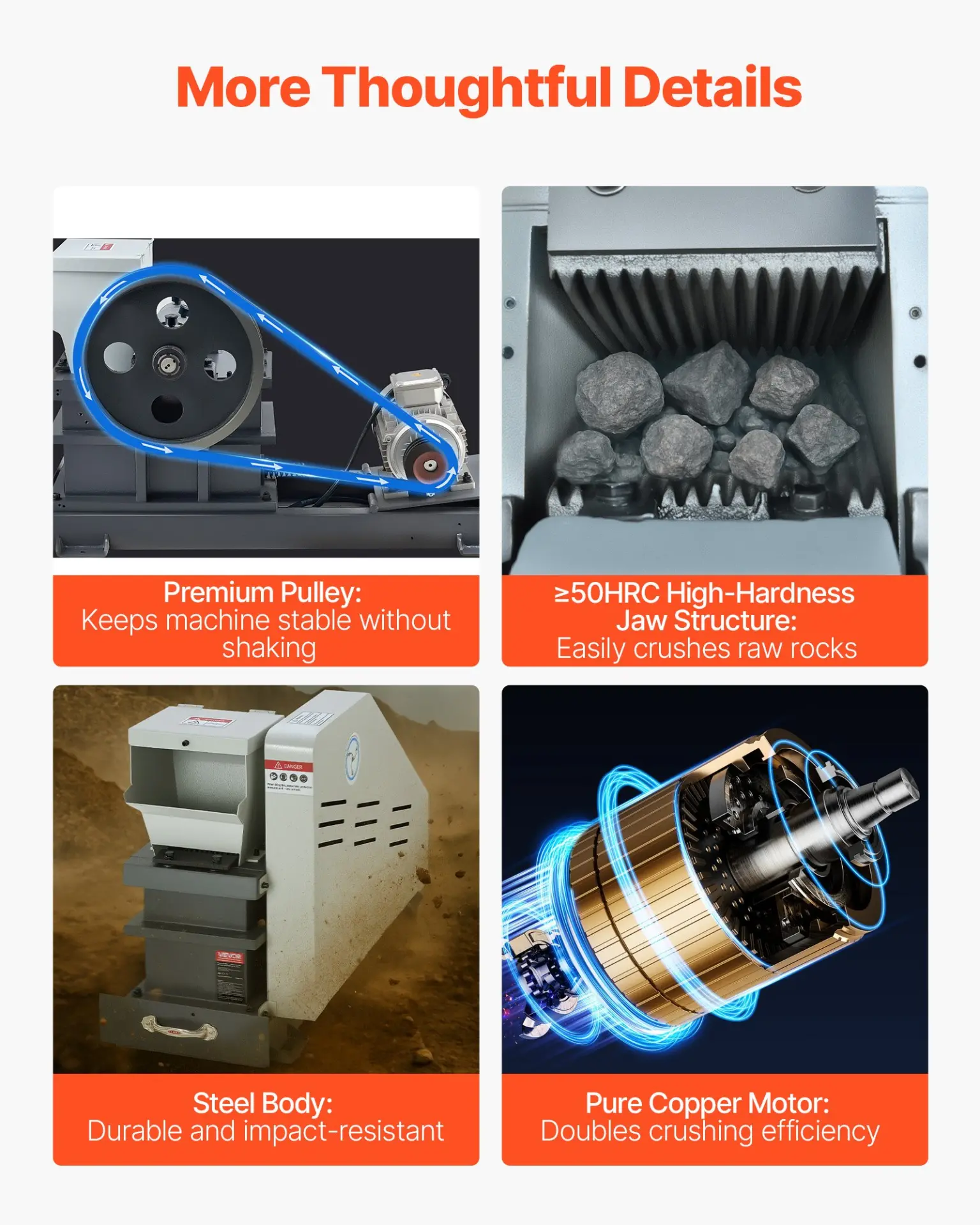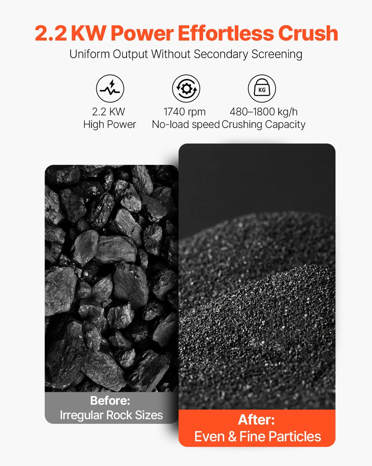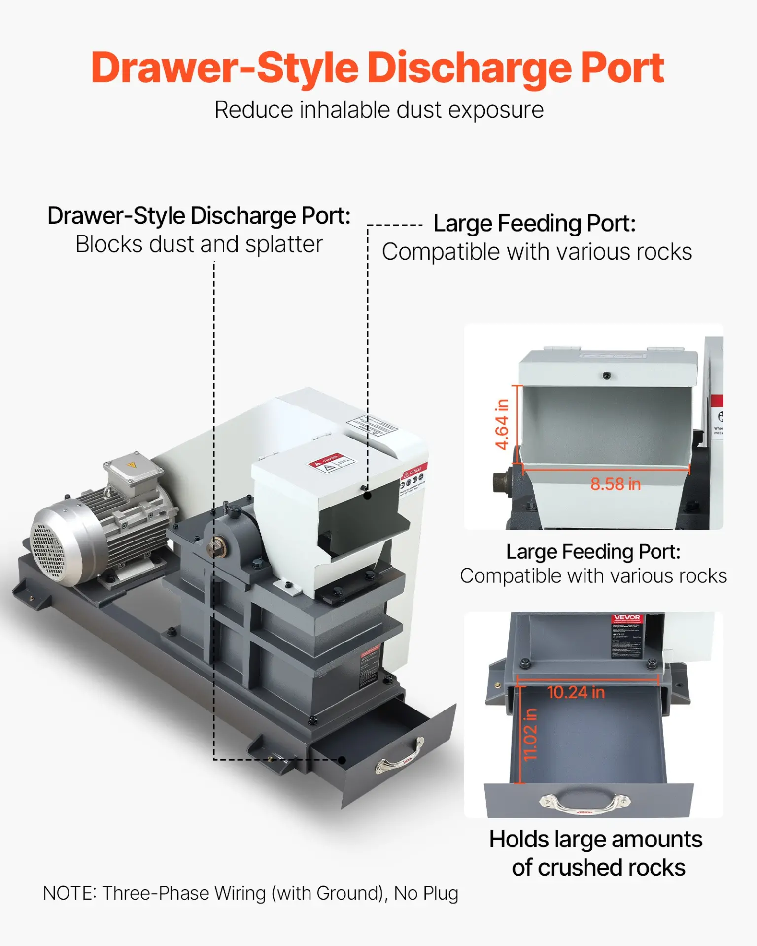 VEVOR Jaw Crusher Machine, 2.2KW High Power Rock Stone Crush Machine, 6.10 x 5.12 inch Feeding Port, 1740 RPM Speed Stone Shatter Grinder, Electric Stone Shatter 220V, for Rock Coal Glass Bottle