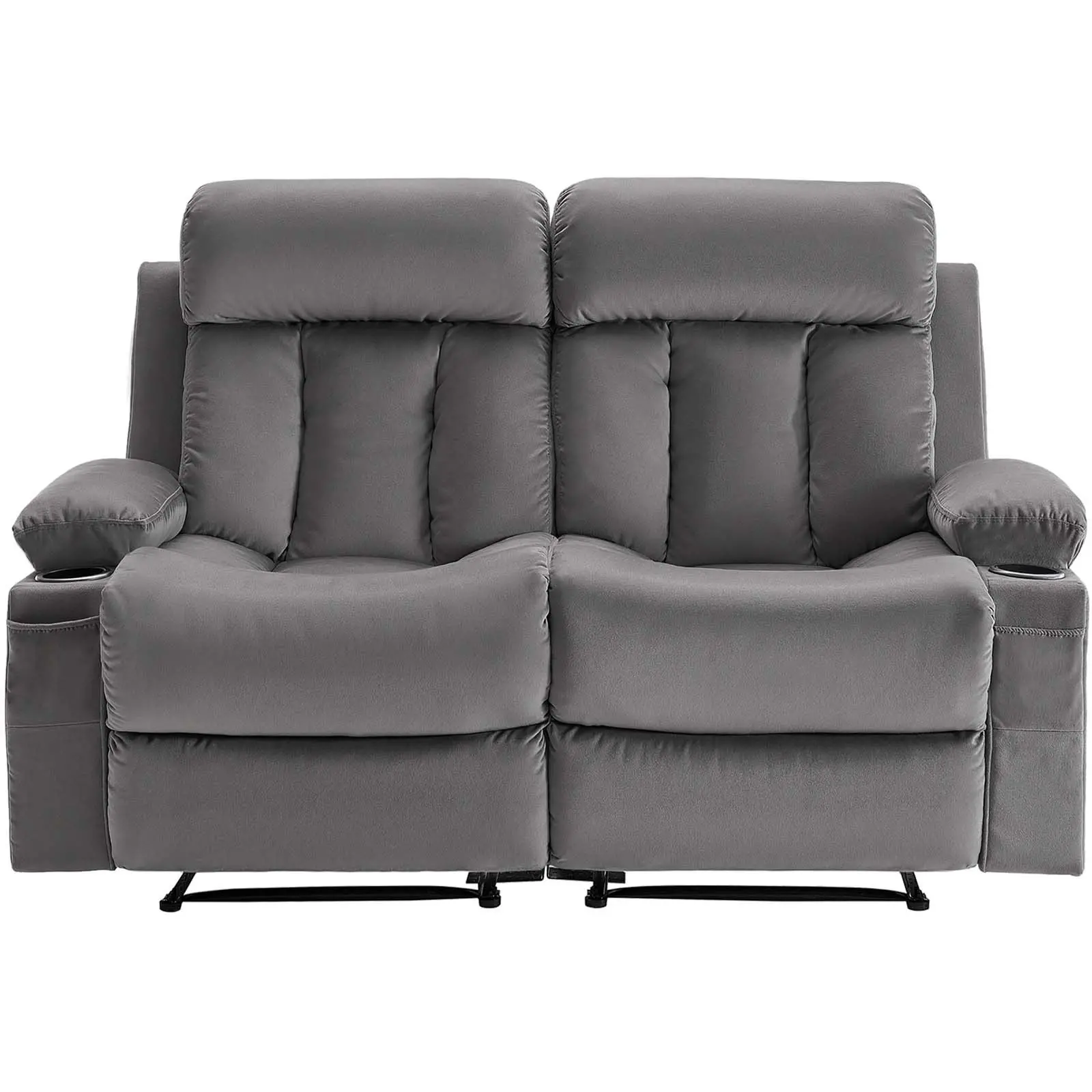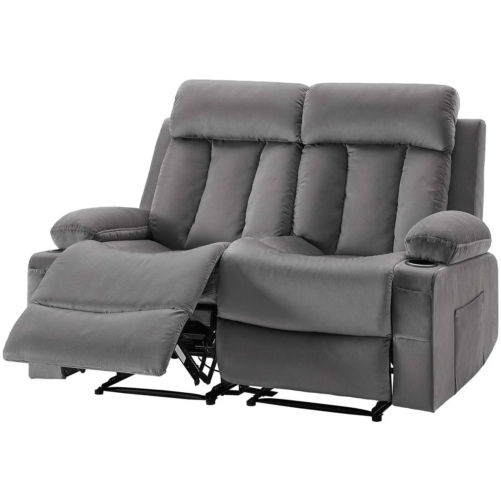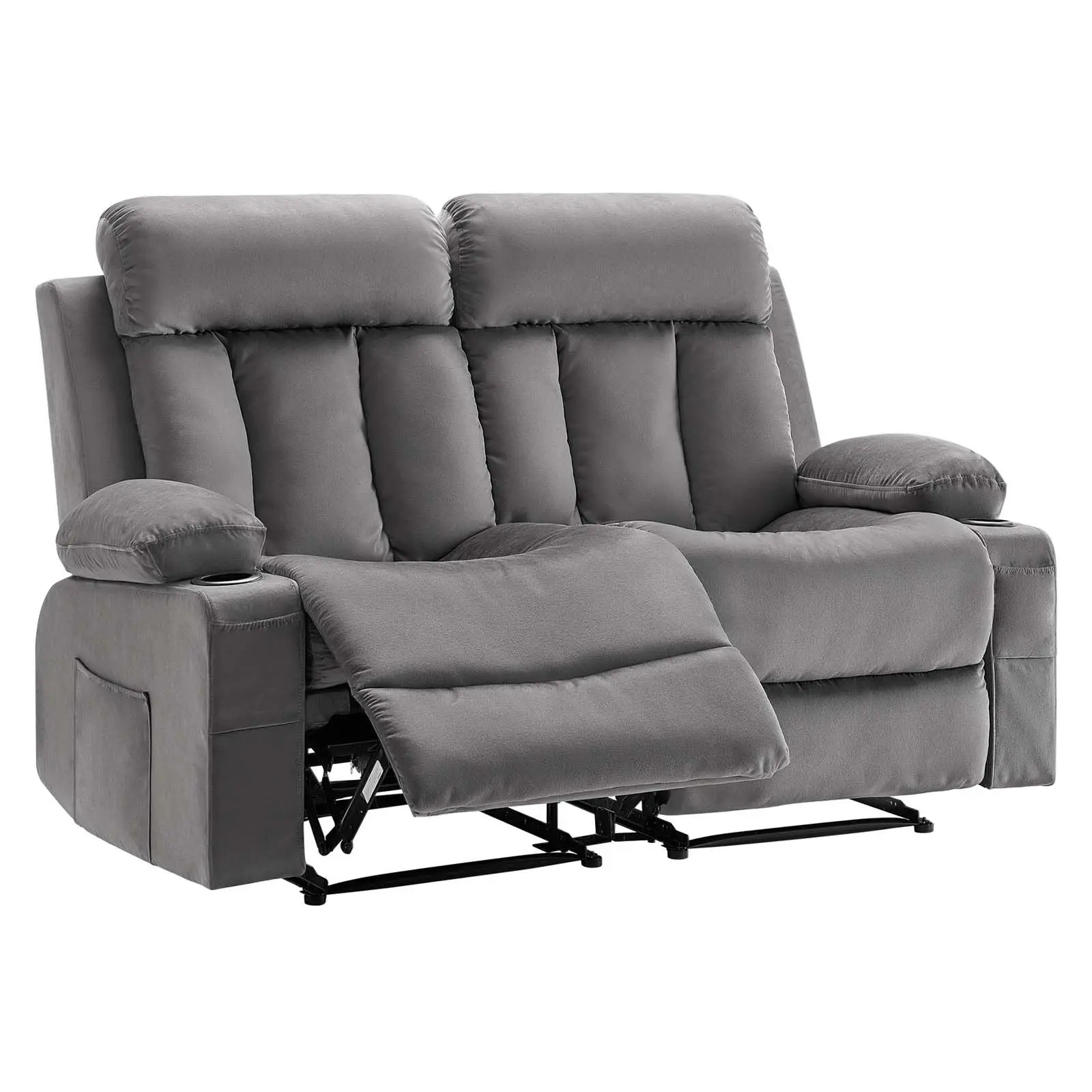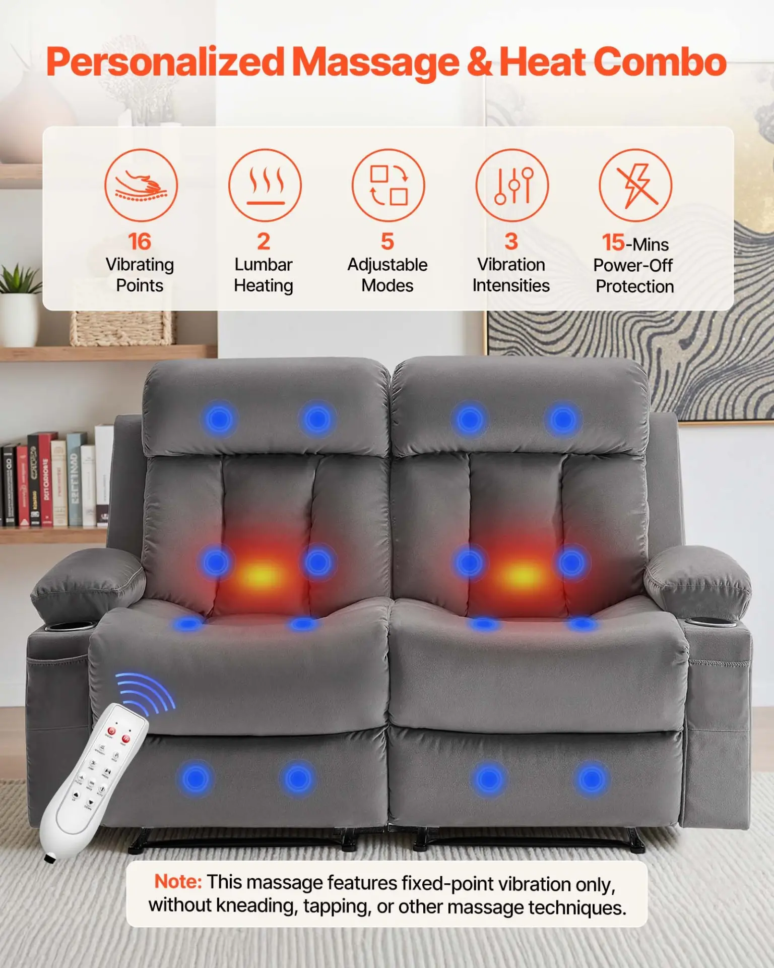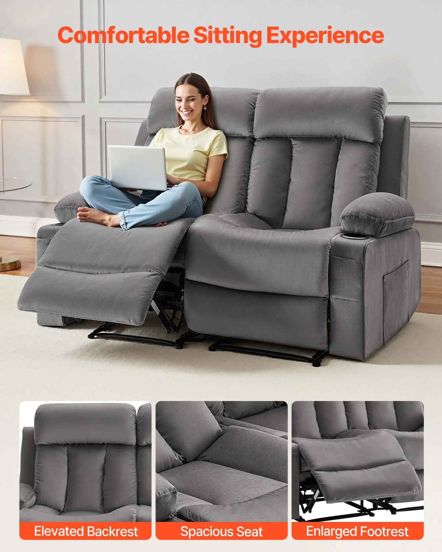 VEVOR Loveseat Recliner Sofa, Power Reclining Couch with Heating and Massage, Soft Velvet Electric Recliner Sofa with USB Ports, Cup Holders andSideBags, Dual Loveseat Chair for Living Room, Grey