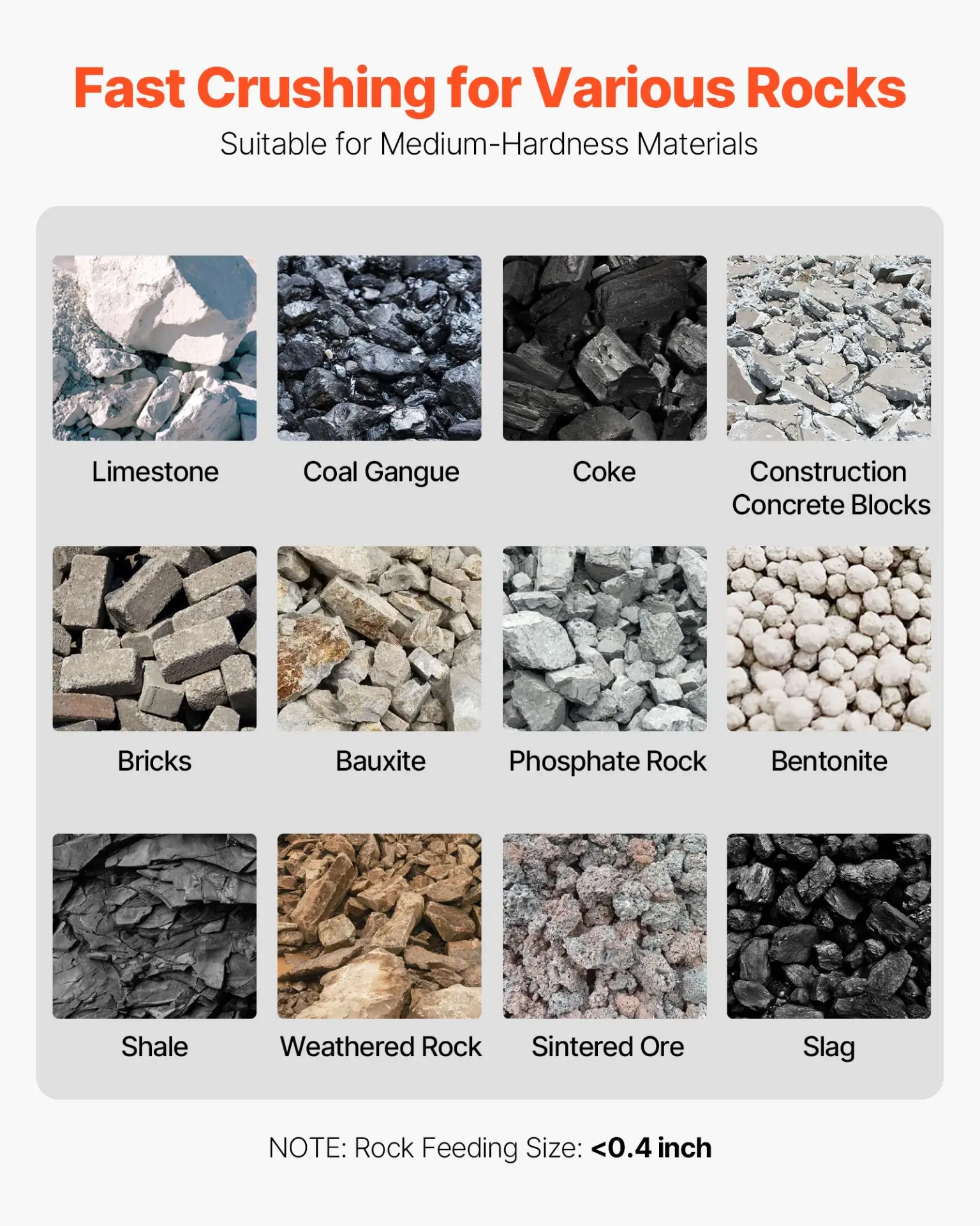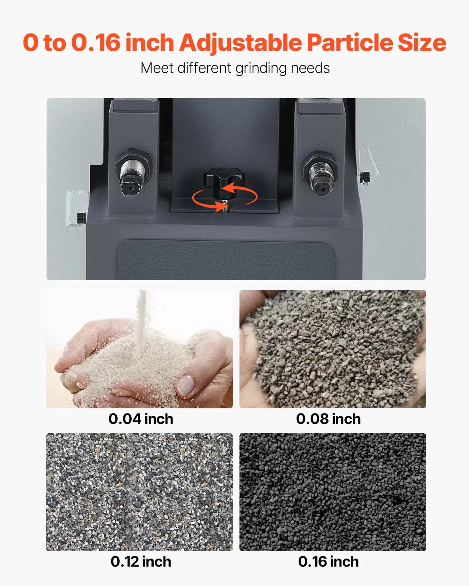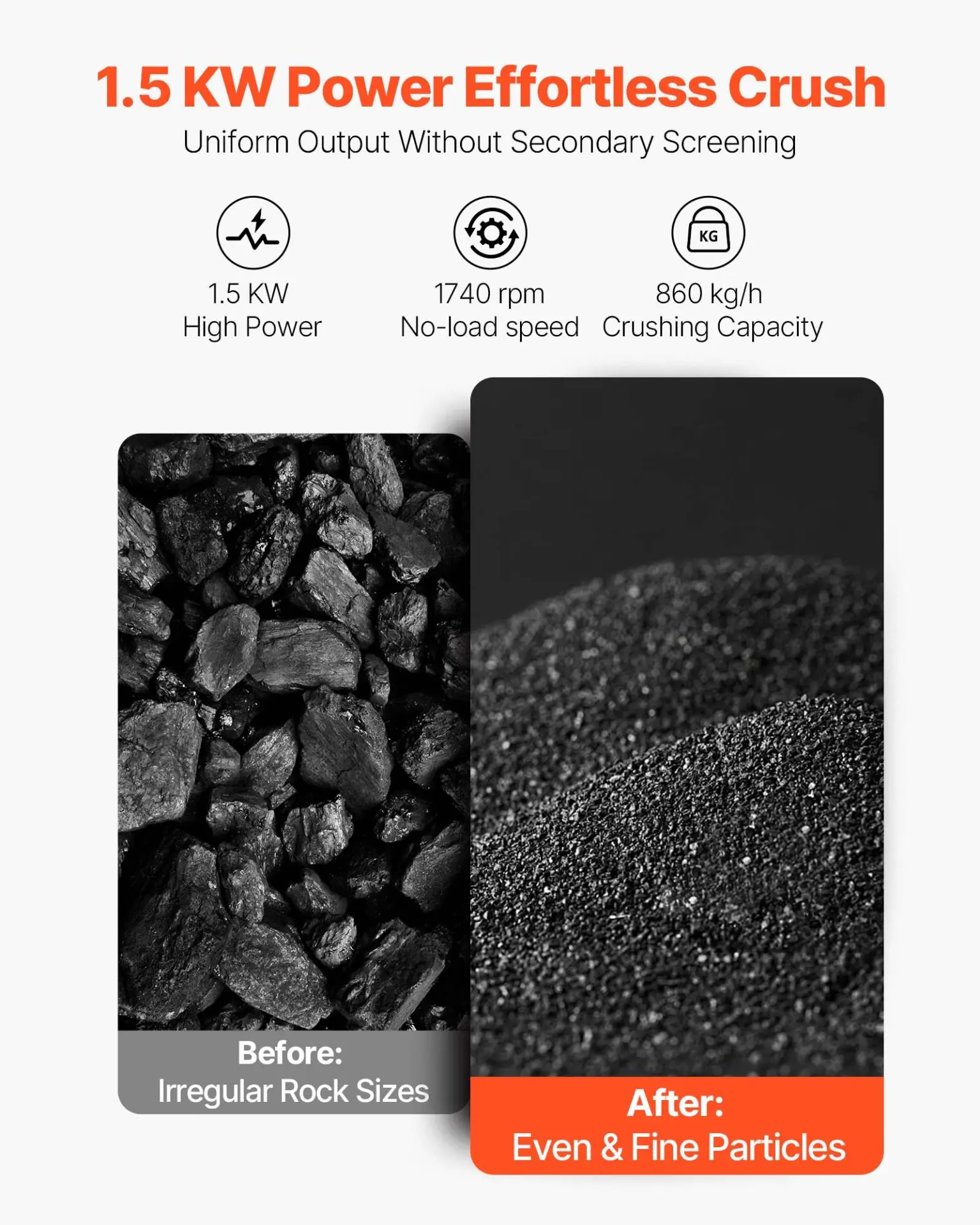 VEVOR Rock Crusher, 220V Double Roller Crushers, Industrial Shredder with 2.56×0.59 inch Dual Feed Inlets, 1740RPM Speed Stone Grinder Rock Crusher, 1.5KW Electric Shatter Pulverizer, 860kg/h Crushing