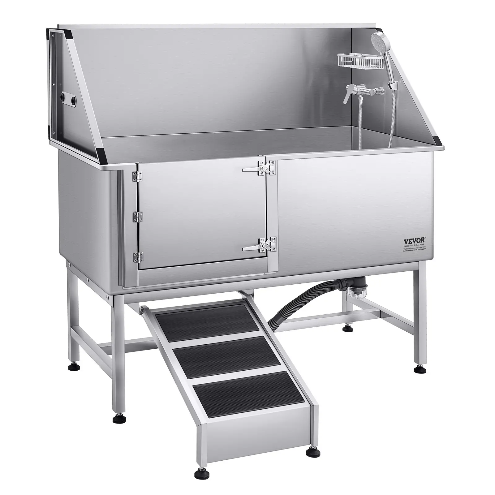 VEVOR Stainless Steel Dog Washing Station, 62 inch Pet Grooming Tub w/ Ramp, PE Water Filter Board, Faucet & Showerhead & Soap Holder Dog Bathtub for Large & Medium & Small Pets (Left Door)