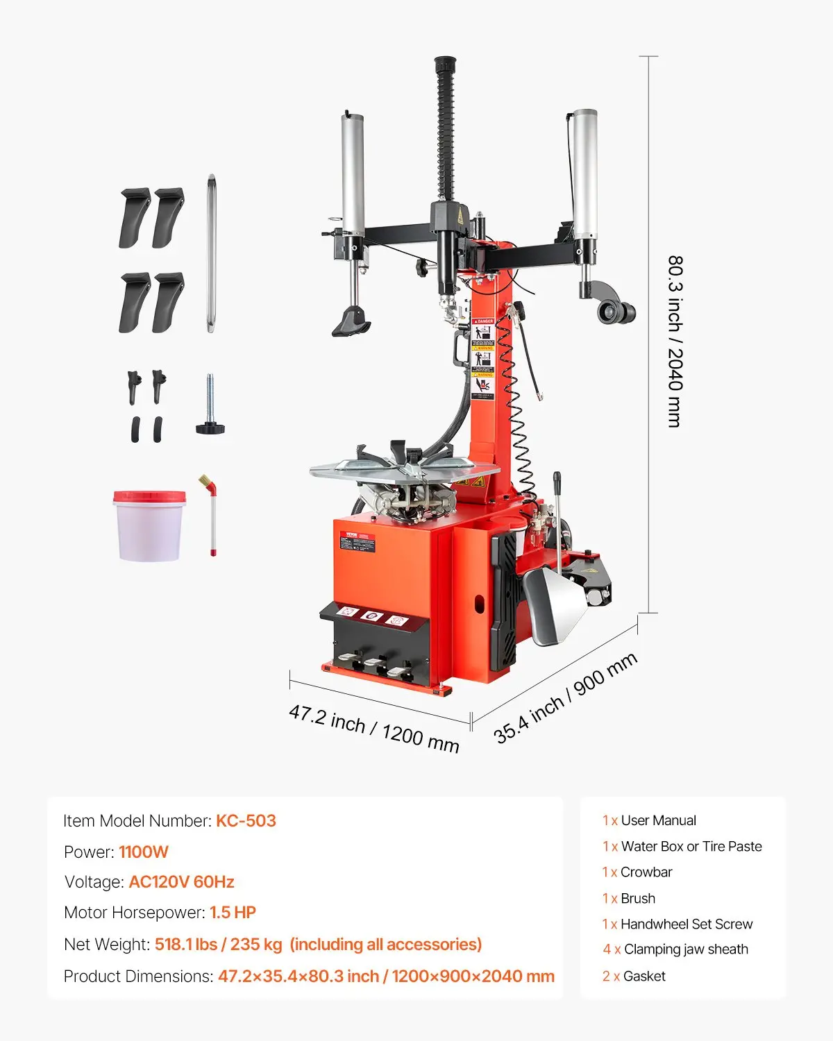 Motor Horsepower: 1.5 HP,Voltage: AC120V 60Hz,Item Model Number: KC-503,Product Dimensions: 47.2 x 35.4 x 77.2 in / 1200 x 900 x 1960 mm,Net Weight: 518.1 lbs / 235 kg (including all accessories),Power: 1100W