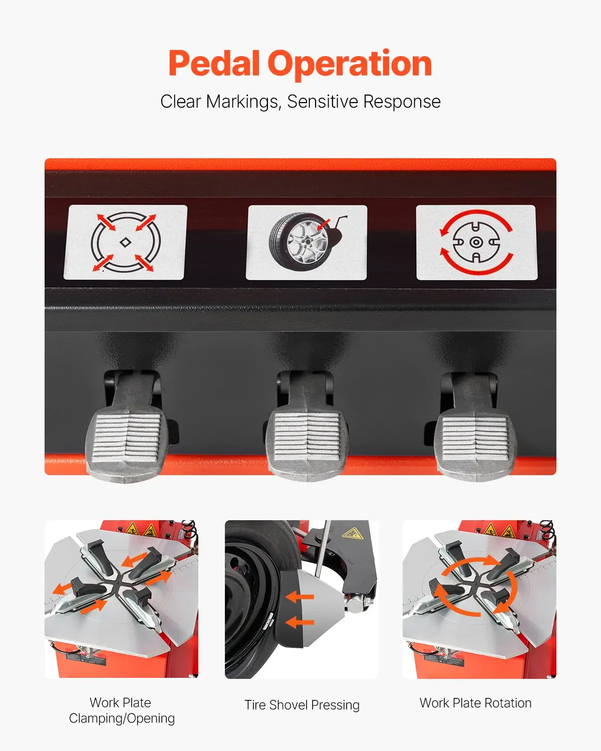 VEVOR Tire Changer Machine, 1.5HP Copper Motor, Durable Tire Changer with Air Pressure Gauge & Pneumatic Assist Arm, Pedal Operated Tire Changer with Thickened Chuck, Fit for Sedan/SUV/Pickup Truck