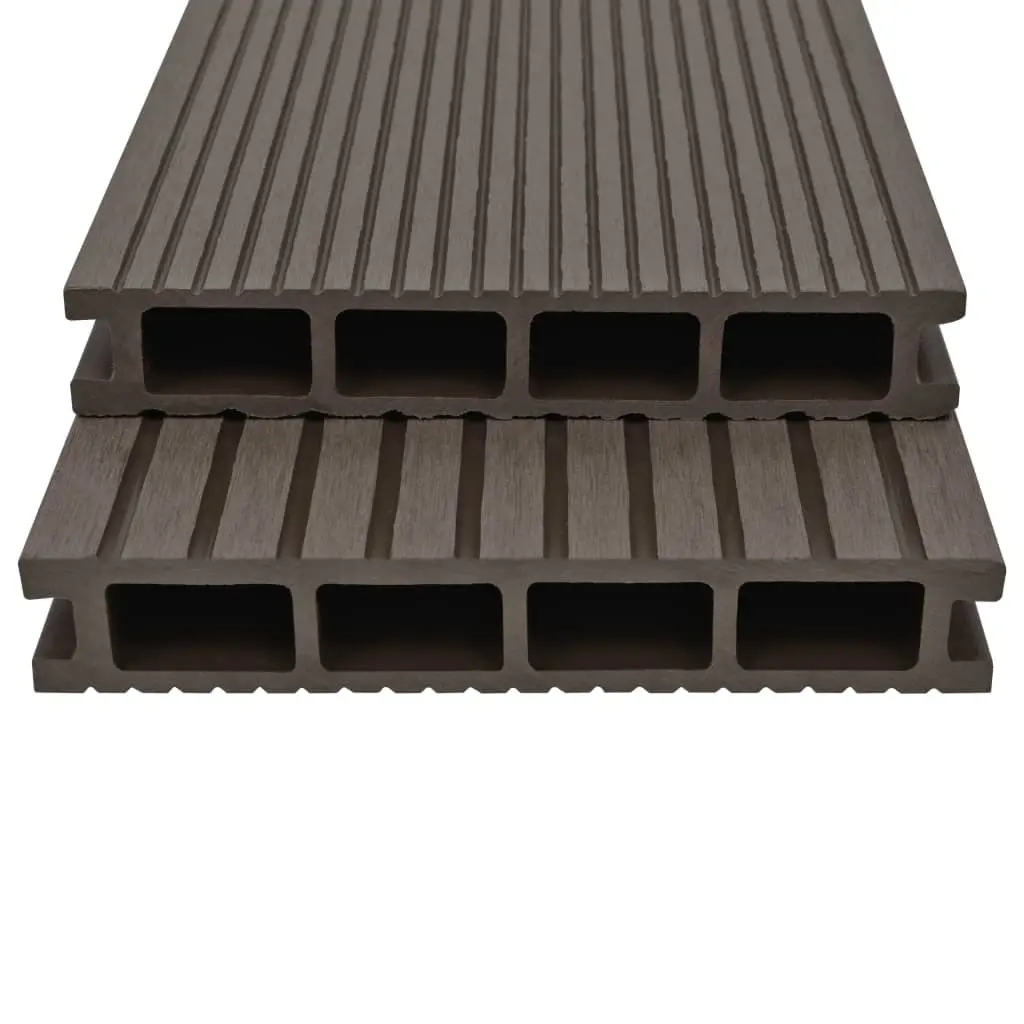 This complete WPC decking board set with accessories, making up a total size of 20 square metres, is perfect for patios, balconies, or areas next to a pool or spa.