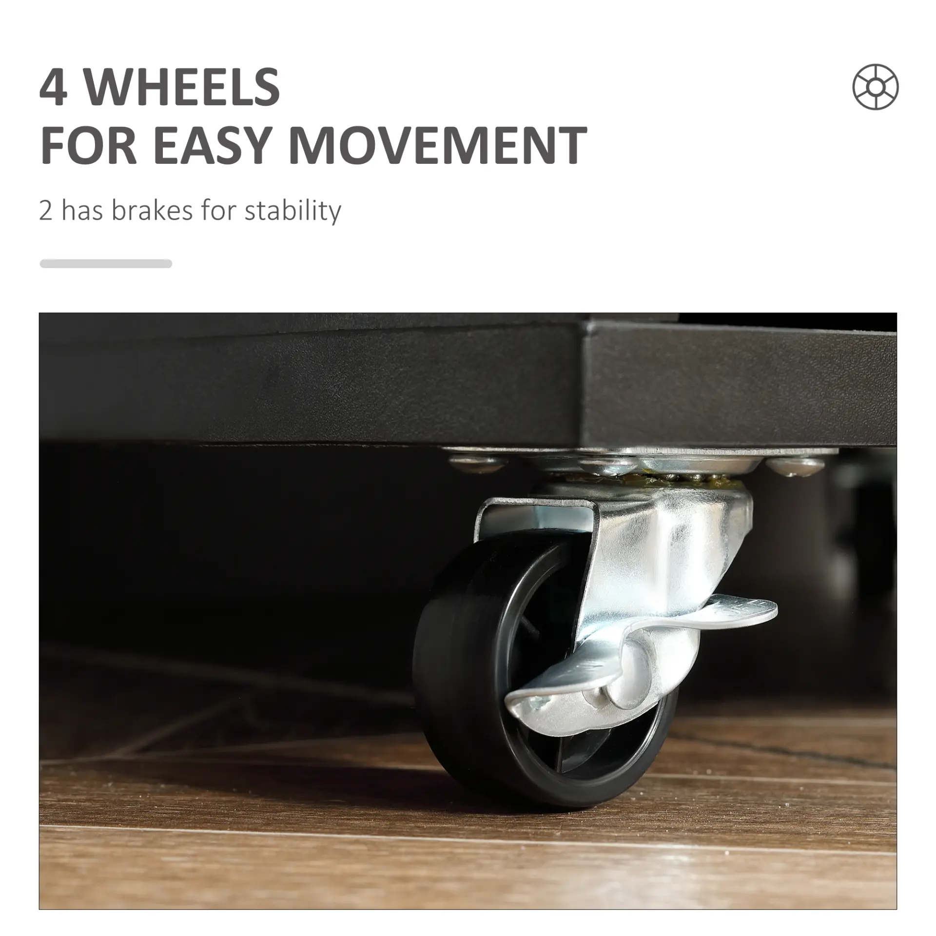 - Wheels to move easily, with brakes for safety
