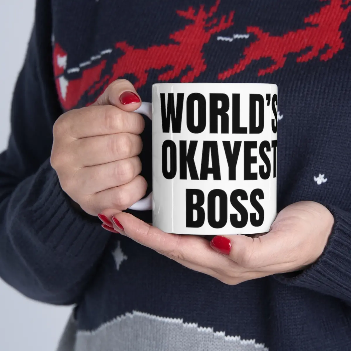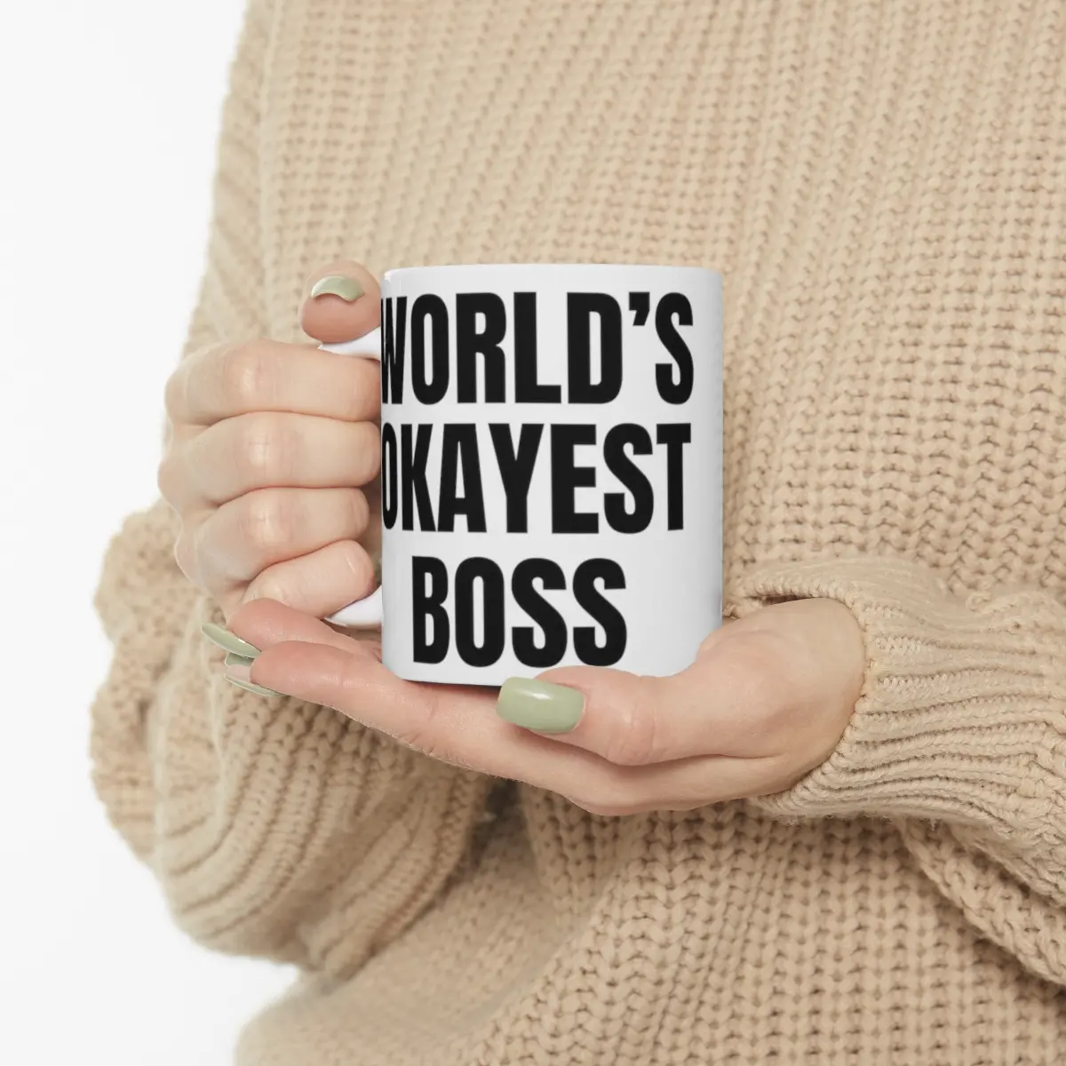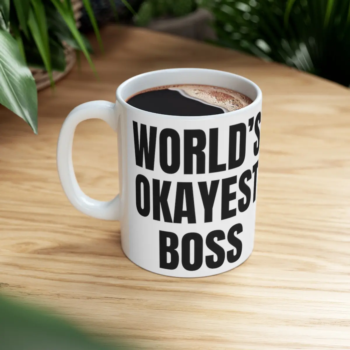 World’s Okayest Boss Funny Humor Mug for family colleague-11oz White, Perfect for Family and Colleagues