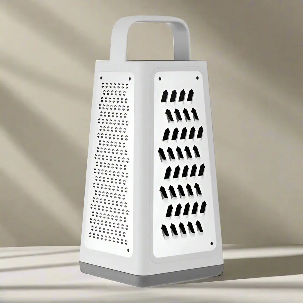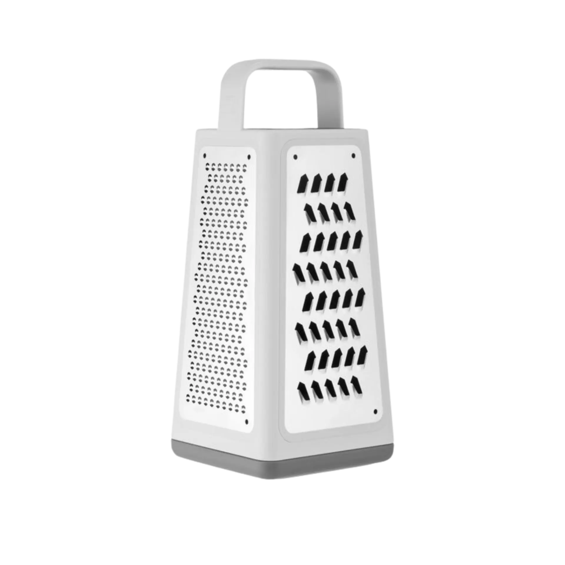 Four-Sided Design Includes fine, medium, and coarse graters, plus a double-sided slicer.